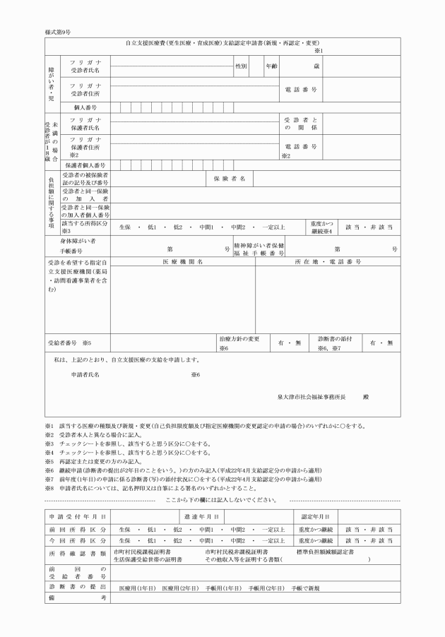 第17条 省令第35条第1項の規定による自立支援医療費の支給認定の申請書は、様式第9号とする。