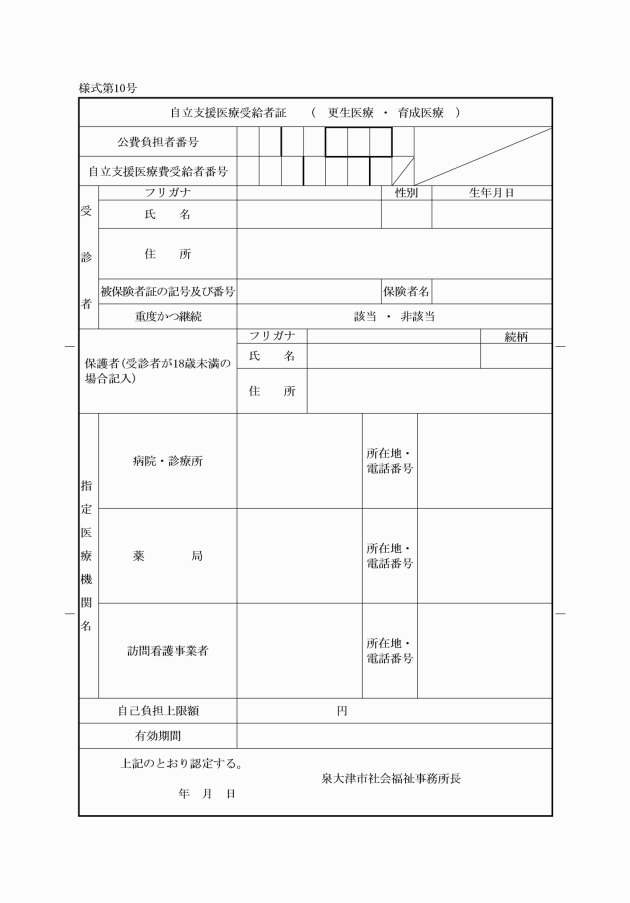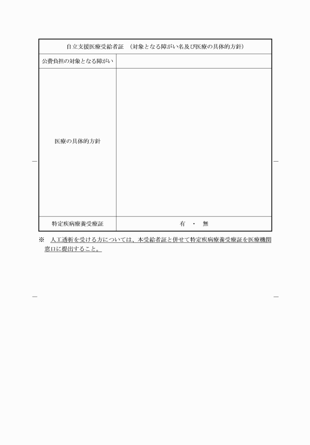 第18条 法第54条第3項の規定により支給認定障害者等に交付する自立支援医療受給者証(以下「医療受給者証」という。)は、様式第10号とする。