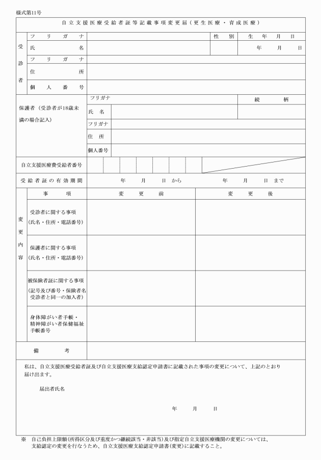 第20条 省令第47条第1項の規定による申請内容の変更の届出書は、様式第11号とする。