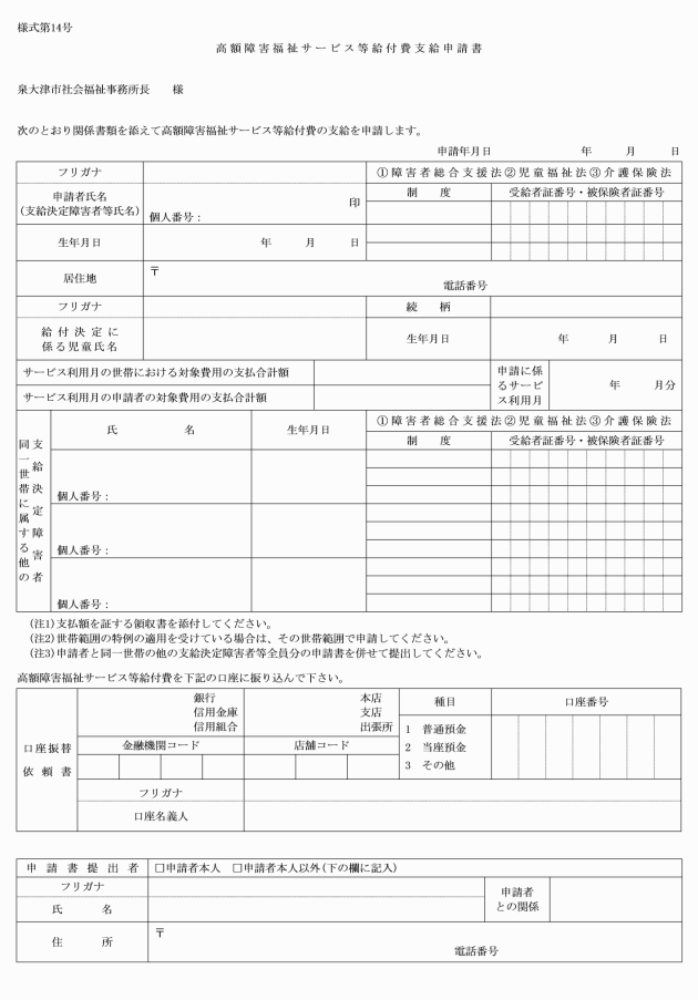 第23条 省令第65条の9の2の規定による高額障害福祉サービス等給付費の支給の申請書は、様式第14号とする。
