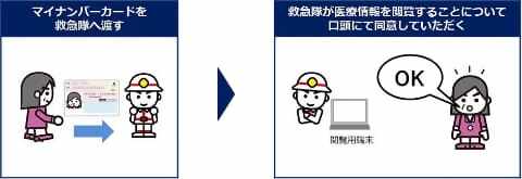 もし、家族が近くにおらず、傷病者の意識がなくなり本人の同意を得ることが困難な場合は、同意なしで閲覧する可能性もあります。(閲覧使用したことを書類でお渡しする場合がございます。)